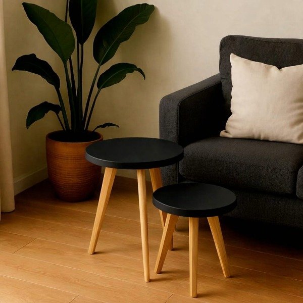 SET X 2 MESAS RATONAS DE MELAMINA EN COLOR NEGRO